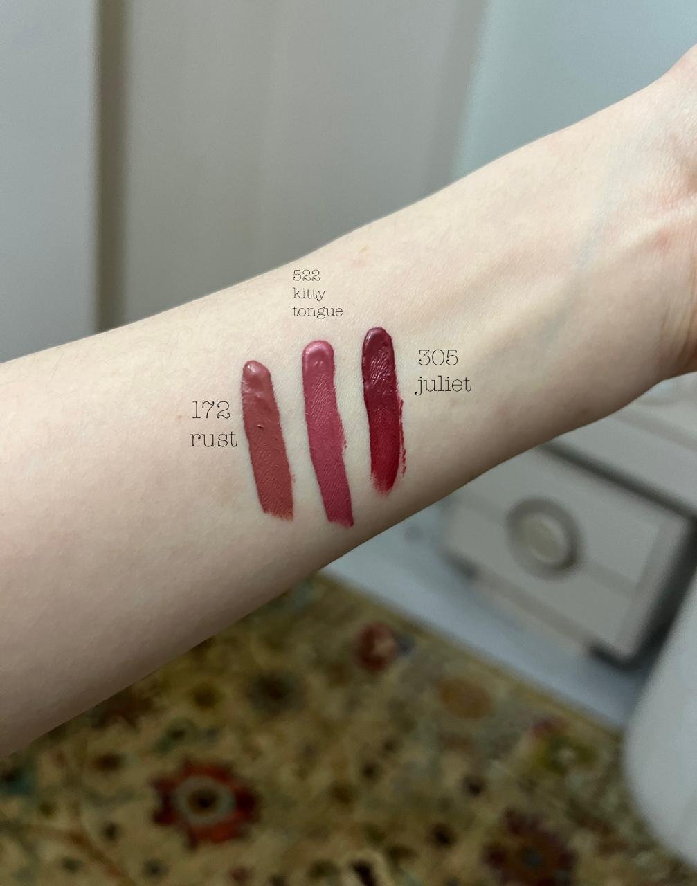 172 rust shade, 305 juliet shade, 522 kitty tongue shade |
