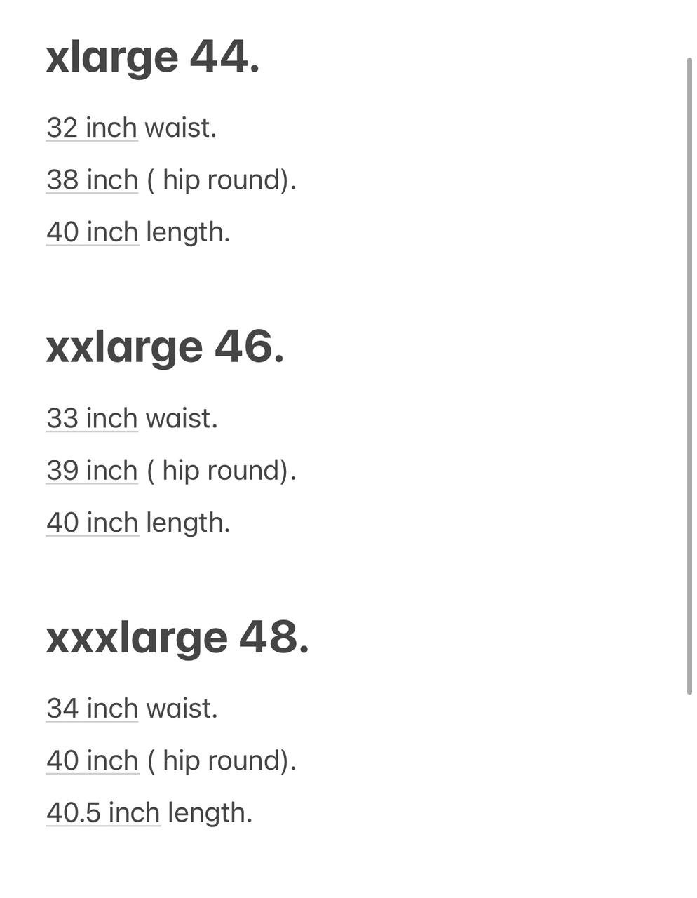 L, M, S, x large, xx large, xxx large |