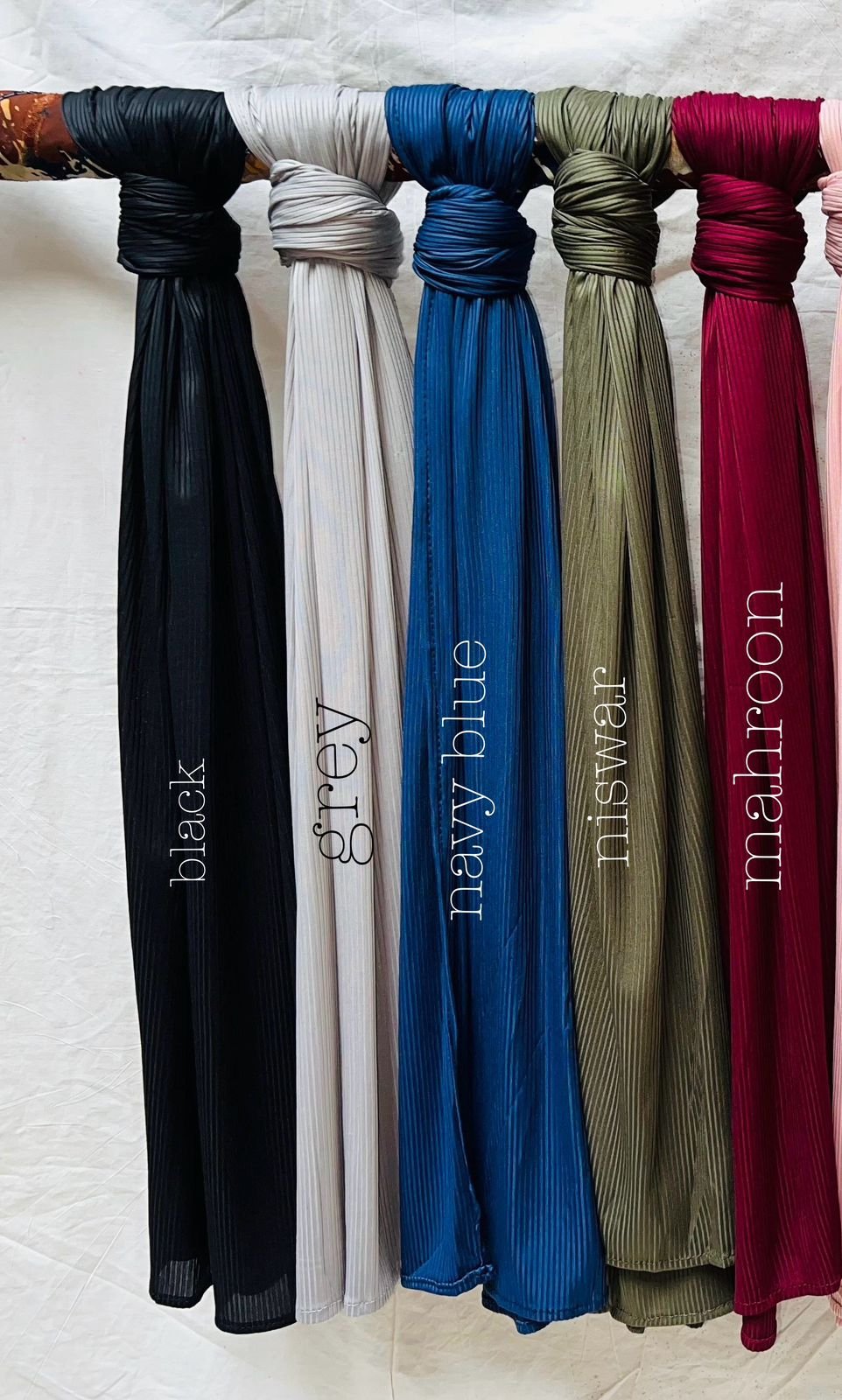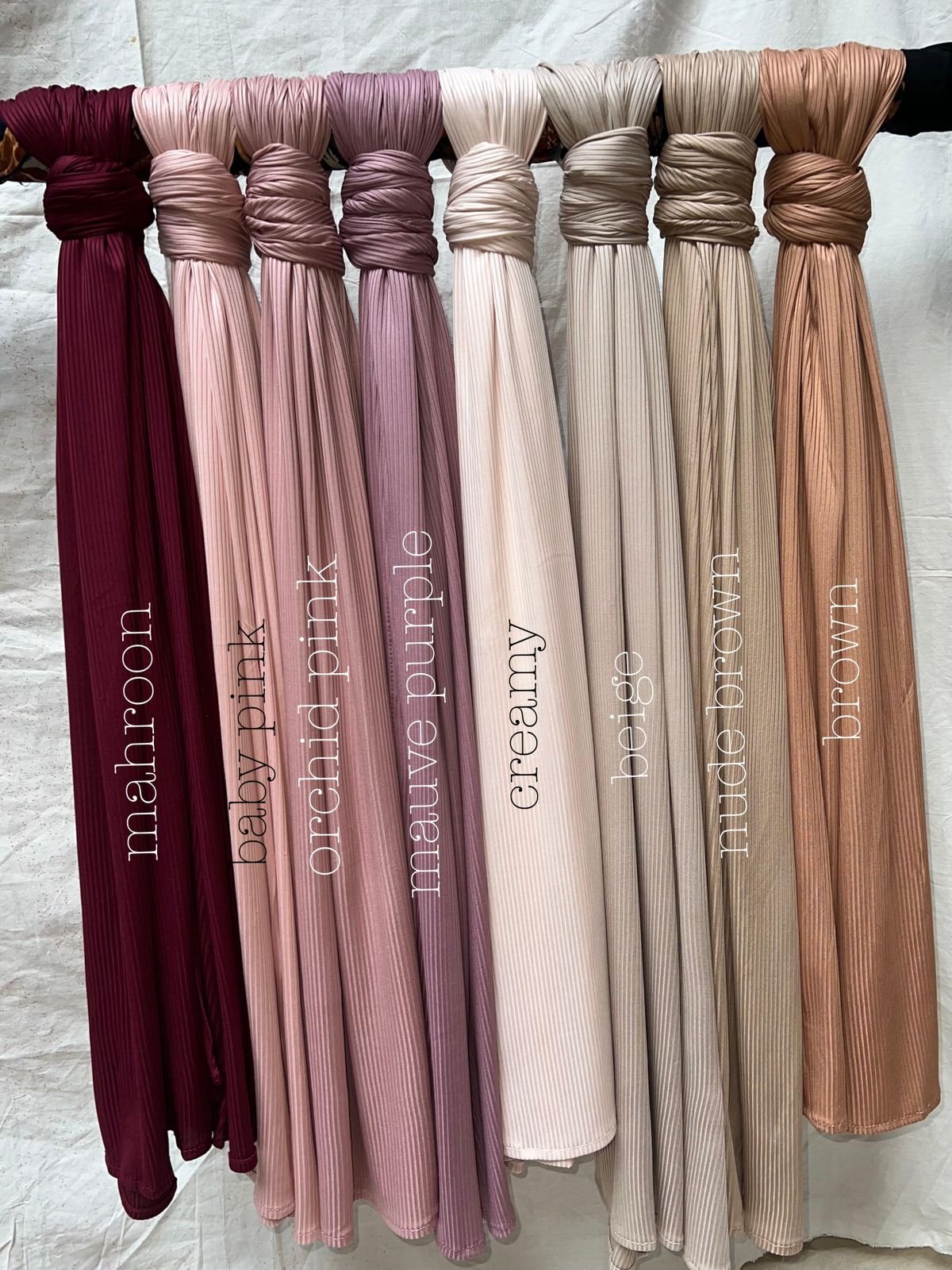 Beige, Black, Brown, baby pink, creamy, Grey, mauve purple, Mehroon, Navy Blue, niswar, nude brown, orchid pink |