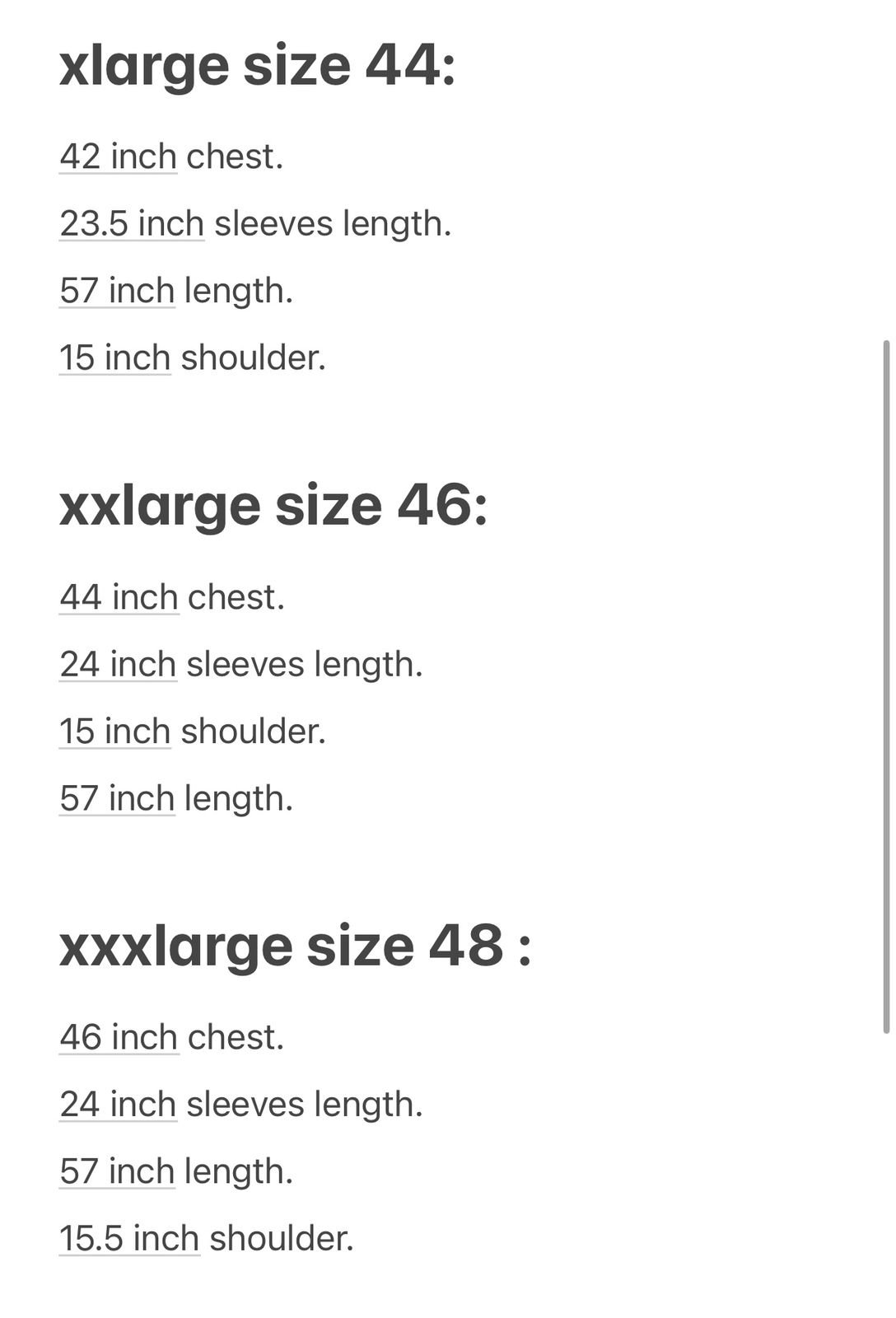 L, M, S, x large, xx large, xxx large |